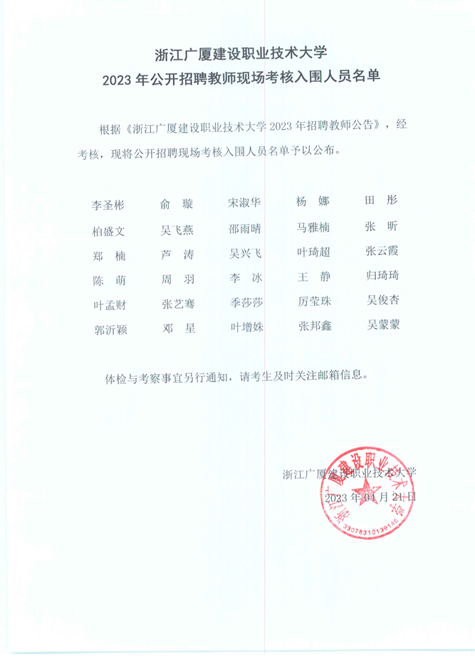 2023年公开招聘教师现场考核入围人员名单