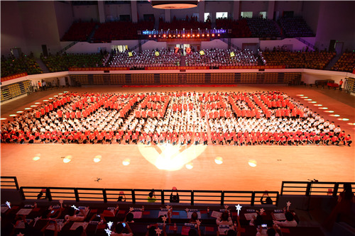 一首《今天是你的生日,中国》拉开活动序幕,当激昂的旋律响起,师生们的热情被迅速点燃。台上一片荧光闪烁汇聚成灯光海洋,台下千人组成的“1949-2019”、“70”巨型方阵庆祝祖国70周年诞辰,他们目光坚定、眼眶泛热,将歌声化作祝福,满满地是对祖国繁荣昌盛、人民幸福安康的美好祝愿。