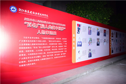 至9月,学院宣传部报道了100多位“教学求是、科研求真、人文求善、艺术求美、学业求进、创业求实”的先进人物事迹。并筛选出100位人物,以图片与文字介绍的形式,把喷绘放置在综合楼前展出,旨在用他们典型的励志故事,引领广大师生牢记总书记嘱托,发扬“敢于有梦、勇于追梦、勤于圆梦”的精神,发挥无限潜能, 以脚踏实地的工作,奋勇争先的实际行动,为实现中国梦助力。