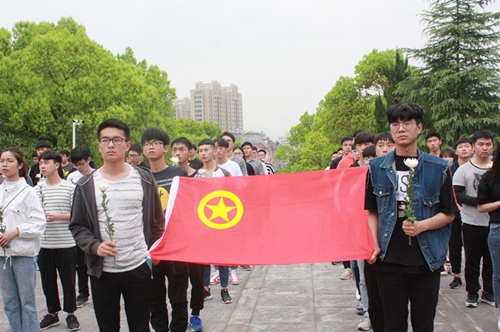 “回顾历史,从辛亥革命、抗日、解放到新中国成立后,我们这块土地上,曾有多少英雄的人民,有着铁一样的脊梁,敢于站在大风大浪的前面,为了全体人民的利益,甘愿献出宝贵的生命!回望历史的进程,我们现在的美好生活,绝不是自然形成的,而是由无数先烈的付出而建立的!”金小华指出,无论何时何地,大学生应明白自己肩负的重任。他勉励在场的同学们勤学求真,奋发向上,继承烈士遗志,弘扬民族精神。