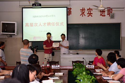 近日,我院在图书馆二楼报告厅举行高层次人才聘任仪式,杨云芳、刘颖林、詹国华、施放四名专家教授受聘我院高层次人才。学院负责人代表学院致欢迎辞,并为受聘专家教授颁发聘书。