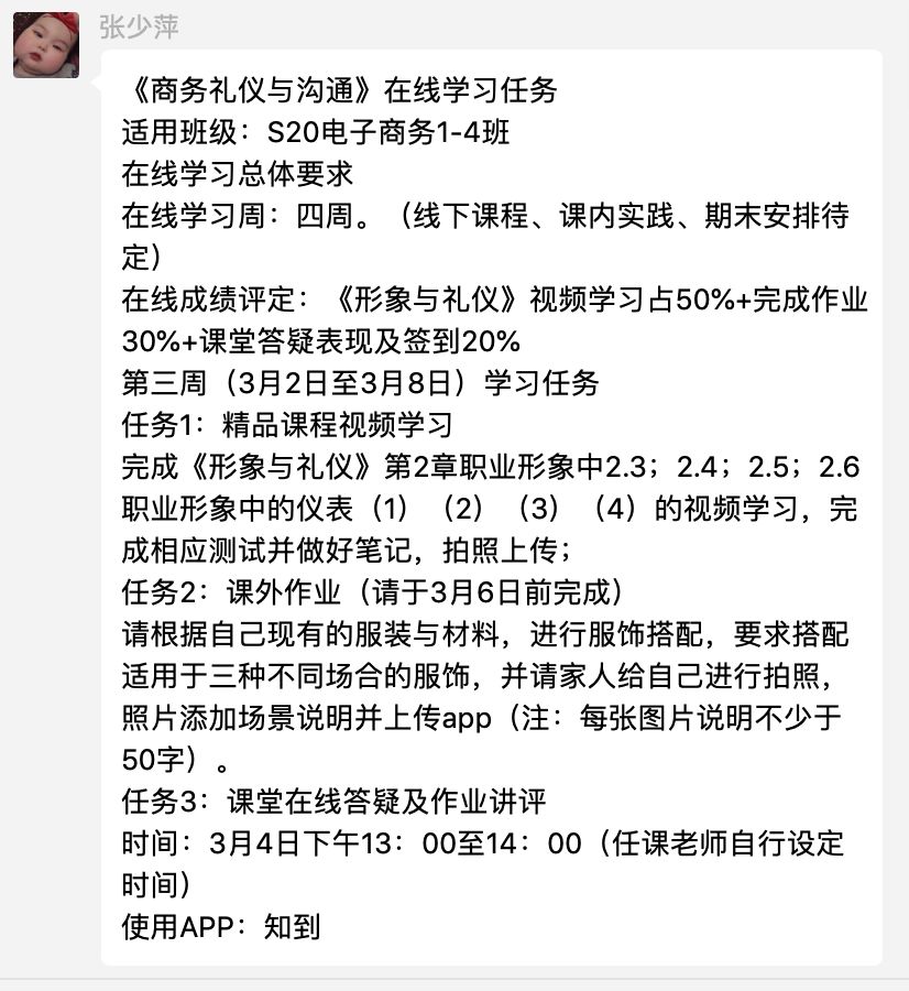 与此同时,各任课教师还提前加入班级QQ、微信群以便与学生更好的交流,提醒学生完成教学任务等,班级群内经常被任课教师发布的教学任务所刷屏。经外教学办还录制了学习通、在浙学等平台的操作帮助视频,帮助各位老师解决平台操作上的问题等。