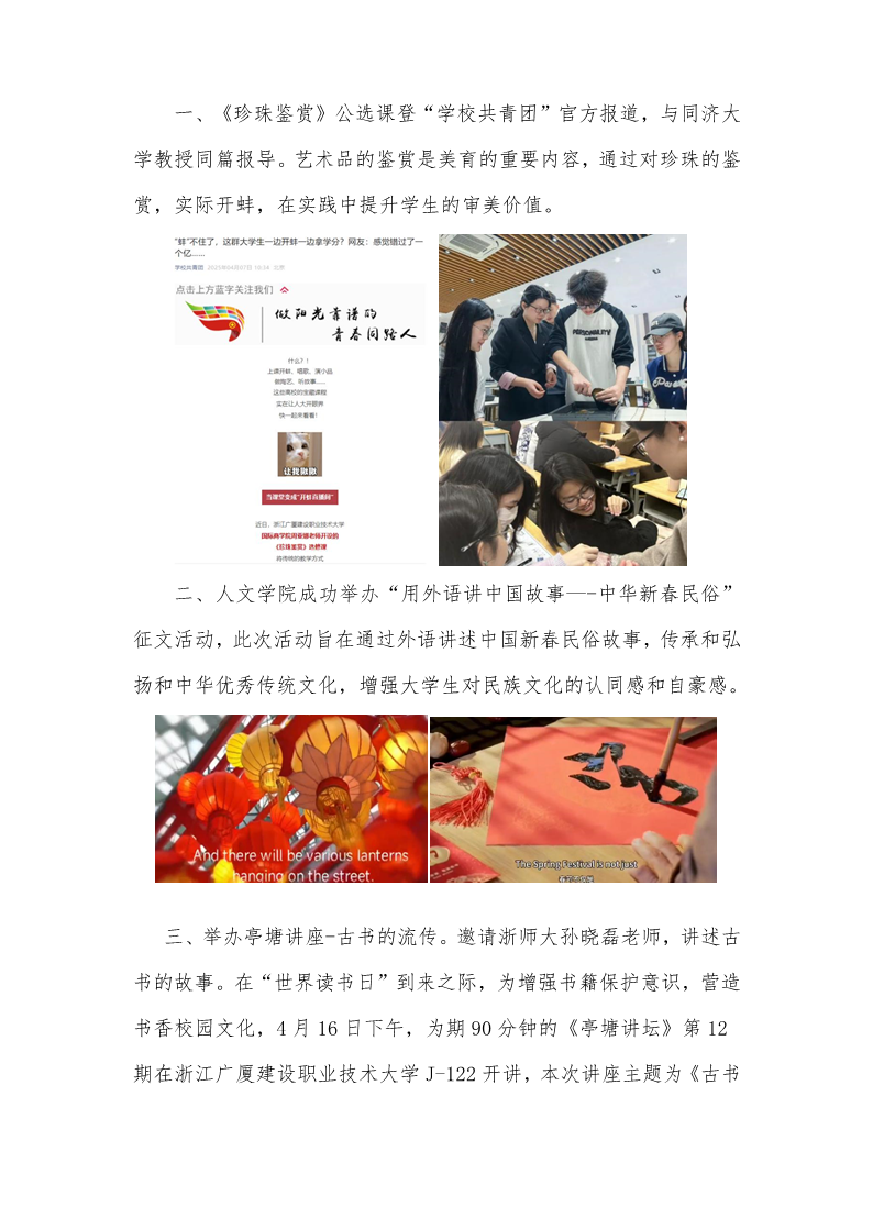 五金建设—人文学院第二季度评建工作动态 --美育实践深耕细作