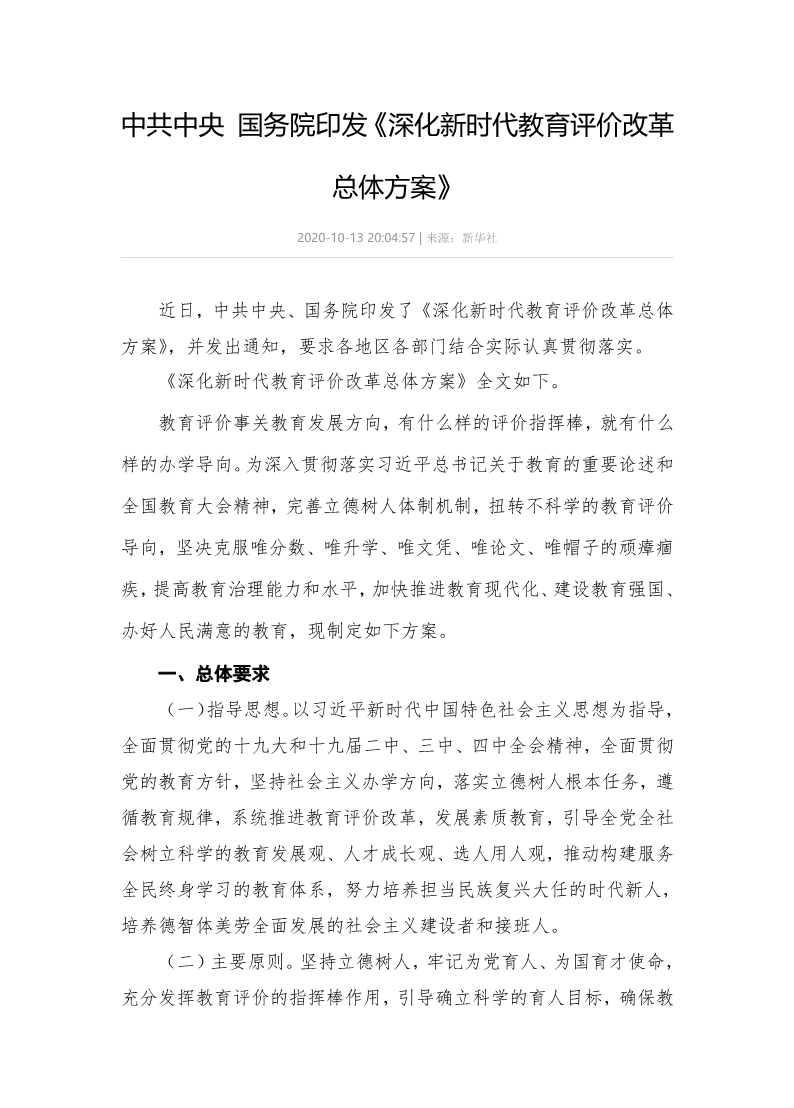 深化新时代教育评价改革总体方案