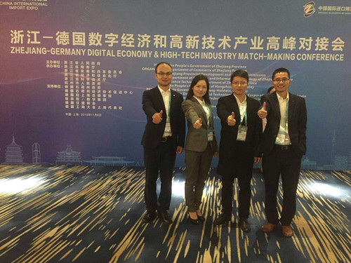 11月5日上午,首届中国国际进口博览会在国家会展中心上海隆重开幕。众多国家政要和各地方代表出席了本次活动,我院陈晨、许申、黄建明、滕婷婷等四位教师应浙江省商务厅的相关邀请,参加本次展会中的浙江——德国数字经济和高新技术产业高峰对接会,承担中国和德方企业之间的洽谈组织和翻译服务。