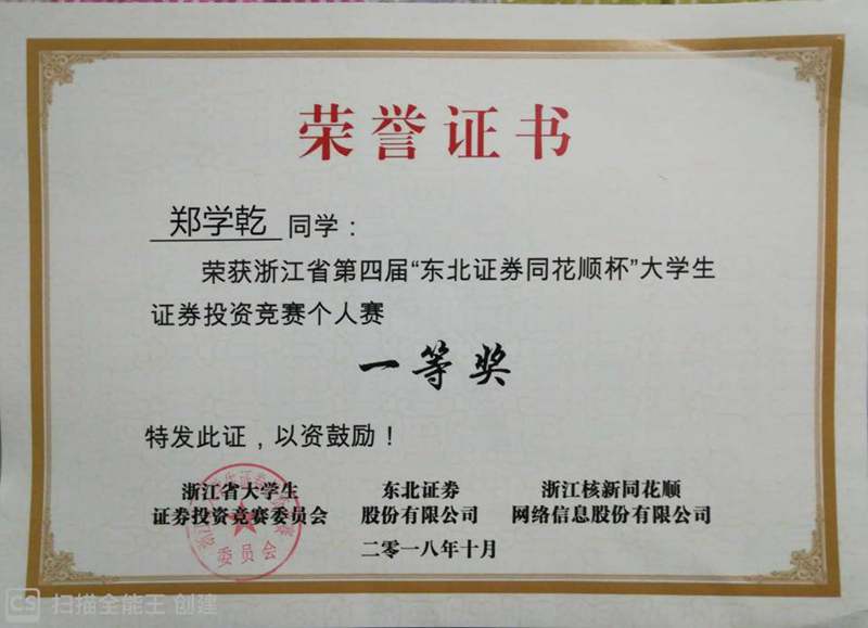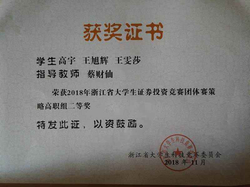 浙江省大学生证券投资竞赛是目前金融类唯一的浙江省A类赛事,该比赛旨在培养学生的证券投资能力,提高学生理论与实践相结合的能力。在此次竞赛中,学子们的证券投资实务能力和金融创新能力表现不俗,同时,学科应用能力也得到了较大的提升。