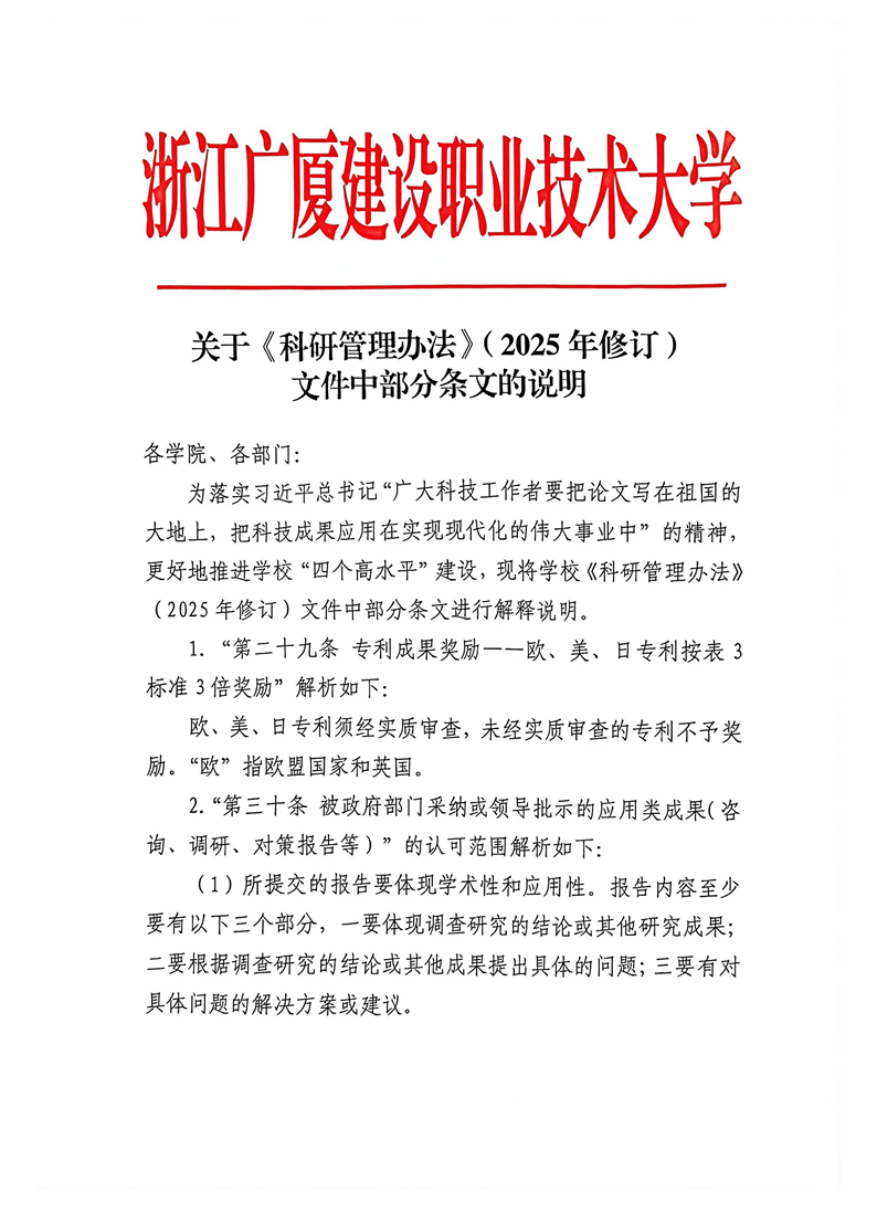 关于《科研管理办法》(2025年修订)文件中部分条文的说明